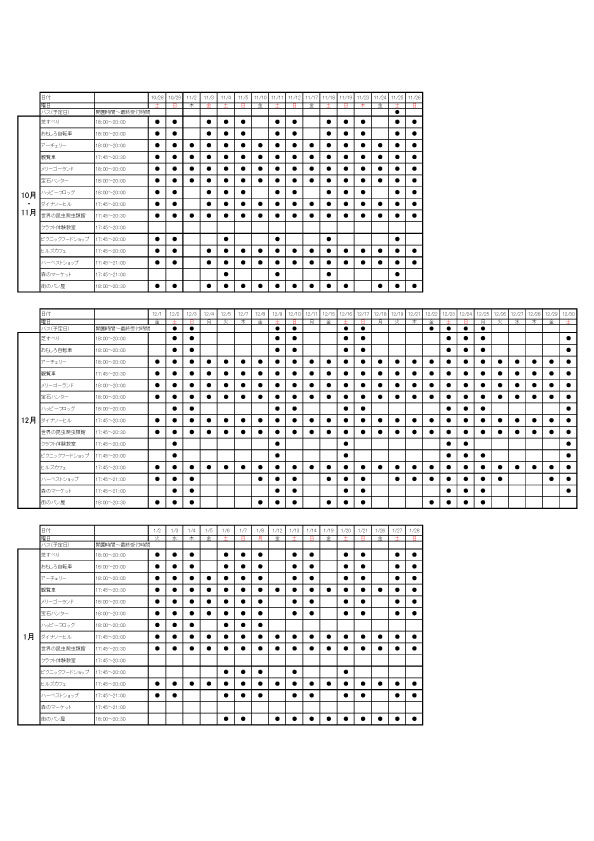 ※店舗の営業日は、イルミネーションイベント開催日のみを表記しています