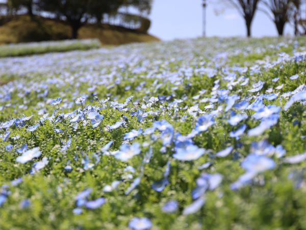 空と大地がひとつになるネモフィラの丘