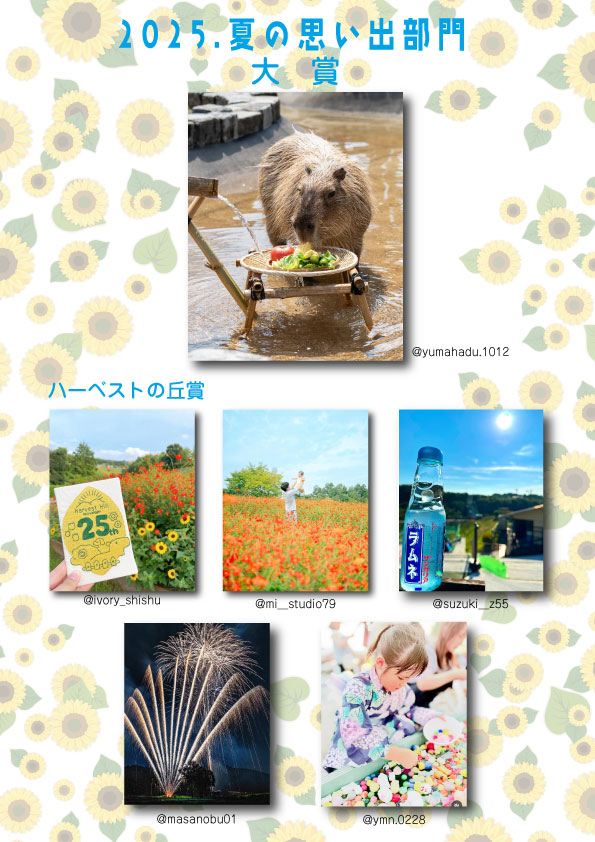 期間中にハーベストの丘で撮影された写真に、「#ハーベストの丘2025夏のフォトコンテスト」をつけてご自身のInstagramへ投稿