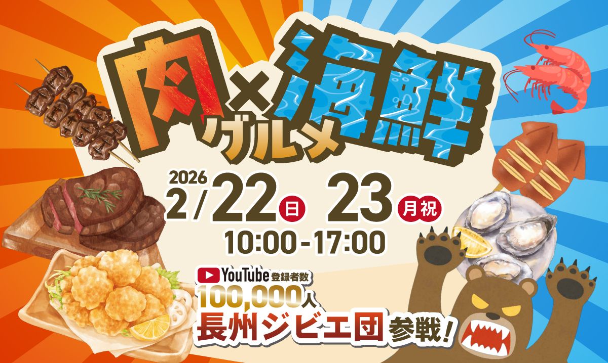 「長州ジビエ団」参戦!本州のツキノワグマ・北海道のヒグマの熊串食べ比べの他、トドやクジラ・アライグマなど日本中のジビエが食べられます!