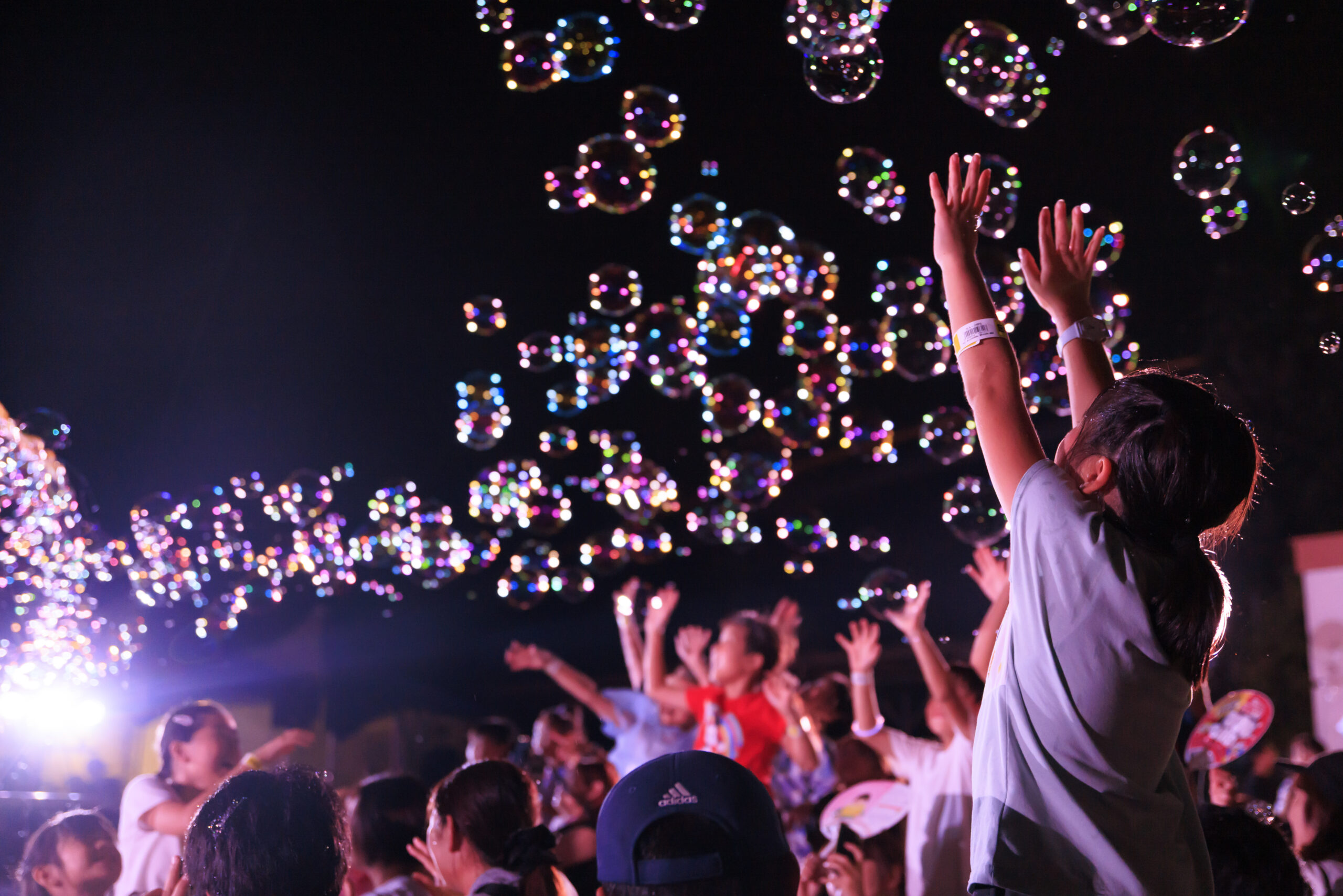 こどもたちを笑顔にするシャボン玉、ぜひ間近でお楽しみください!