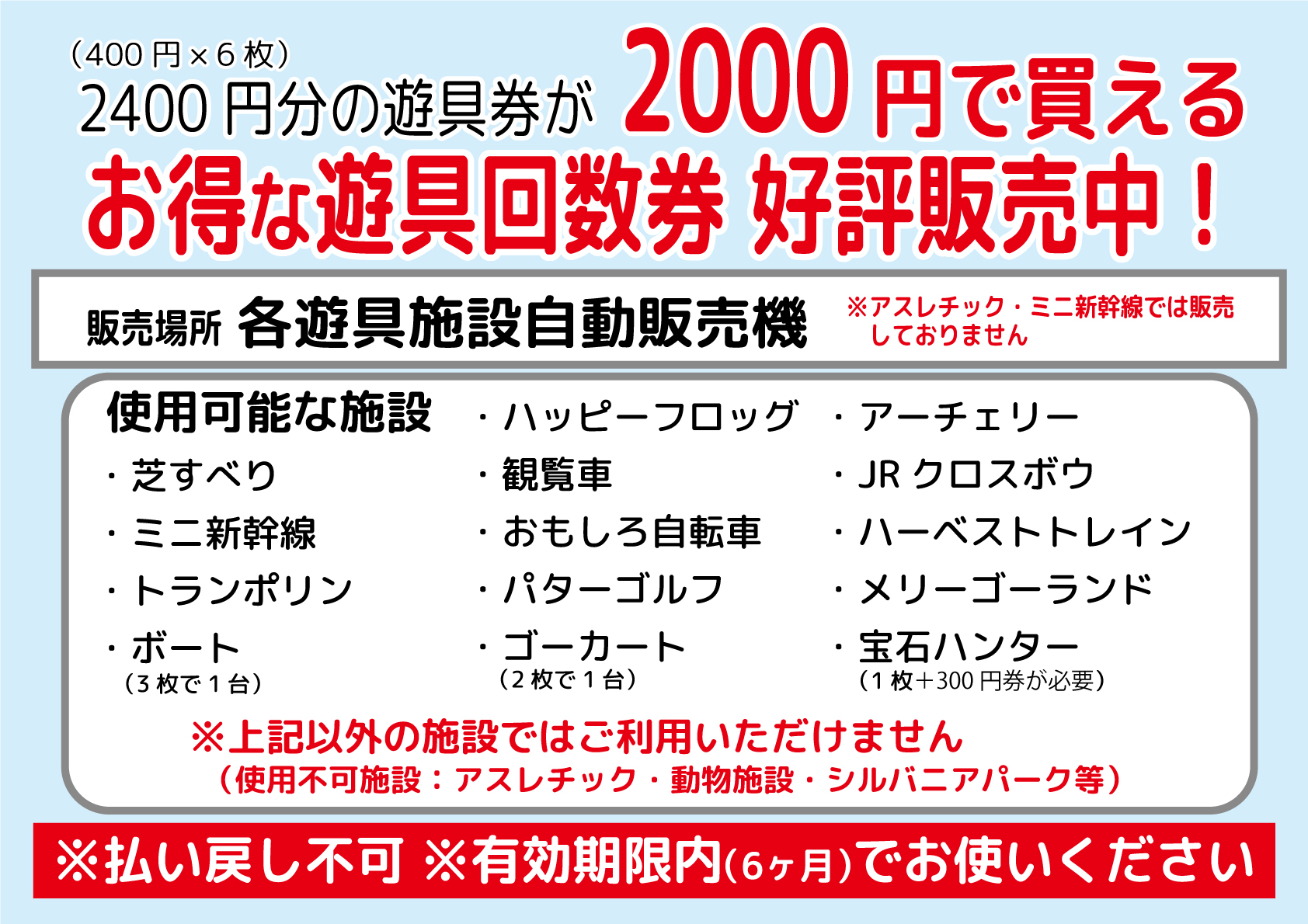 ※3/19まではtarget=””_blank”「遊具回数券」の利用対象外です(3/20以降は利用可能)
